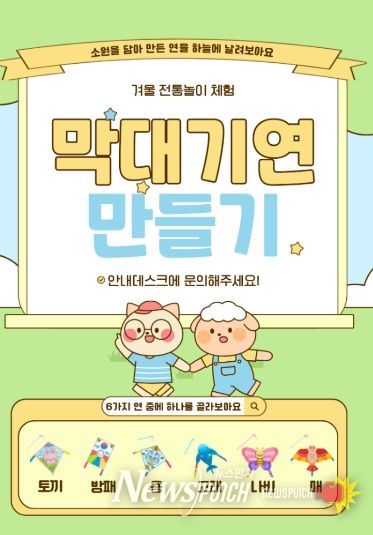 전시에서는 연의 유래와 역사, 전통 연에 담긴 다양한 상징과 뜻을 살펴볼 수 있으며, 겨울과 설날이라는 계절적 분위기에 맞춰 전통 세시풍속을 친근하게 이해할 수 있도록 구성했다.