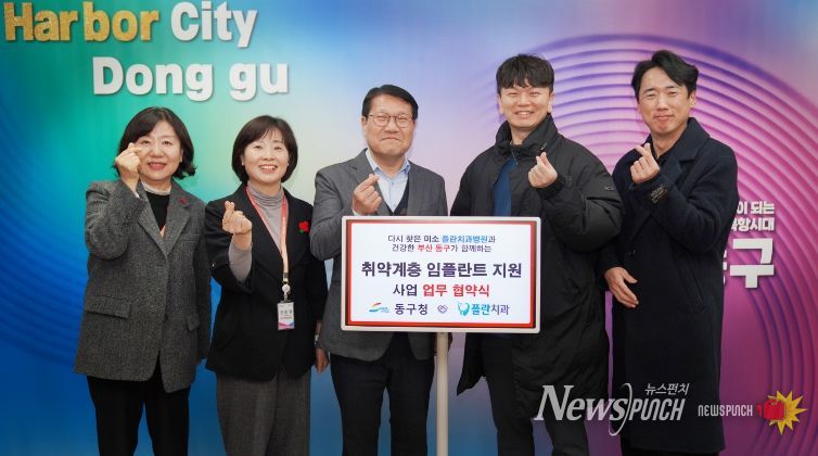 뉴스펀치 김윤걸 기자 | 부산 동구는 20일 부산 플란치과병원과 저소득 취약계층을 위한 임플란트 지원 업무협약을 체결했다.