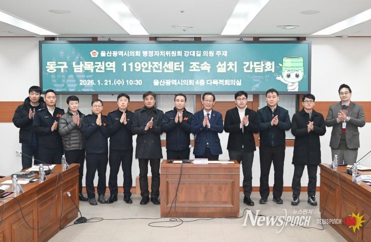 뉴스펀치 김윤걸 기자 | 울산시의회 강대길 의원은 21일 의회 4층 다목적 회의실에서 주민, 소방본부, 동부소방서, 울산도시공사 관계자 등과 함께 ‘동구 남목권역 119안전센터 조속 설치’ 간담회를 가졌다.