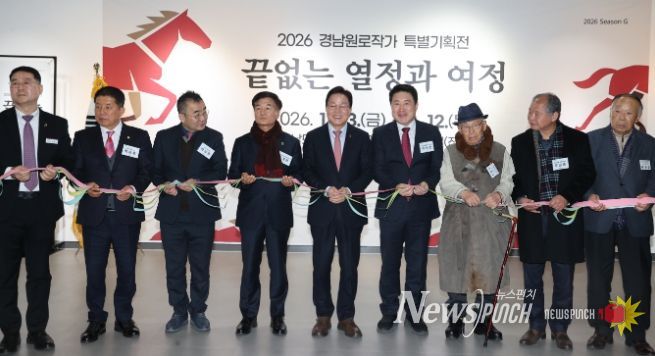 뉴스펀치 박세훈 기자 | 경상남도는 23일 경남문화예술회관에서 열린 ‘2026 경남원로작가 특별기획전: 끝없는 열정과 여정’ 개막식에 참석해 지역 미술계를 지켜온 원로 작가들에게 깊은 존경과 감사의 뜻을 전했다.