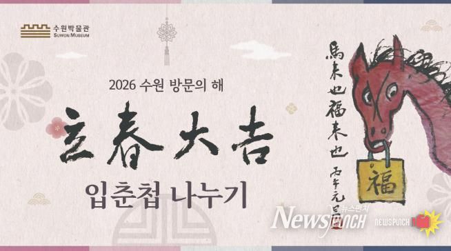 뉴스펀치 박상훈 기자 | 수원박물관이 2026 수원 방문의 해를 맞아 1월 31일 오후 1시부터 3시까지 박물관 1층 로비에서 세시(歲時) 행사 ‘입춘첩 나누기’를 연다. 관람객에게 서예가 근당 양택동 선생의 친필 입춘첩을 배부한다.
