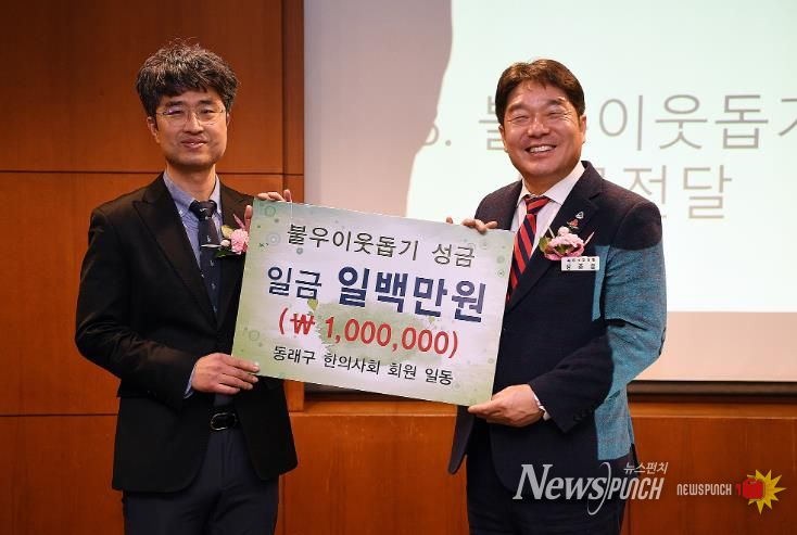 뉴스펀치 김윤걸 기자 | 부산 동래구는 지난 21일 동래구 한의사회가 정기총회에서 어려운 이웃을 위한 ‘희망 2026 나눔 캠페인’에 동참하며 이웃돕기 성금 100만 원을 전달했다고 밝혔다.