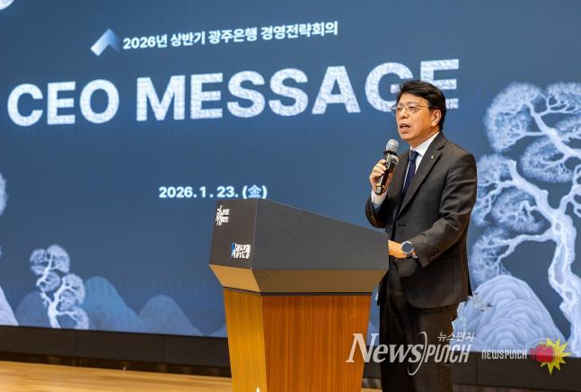 뉴스펀치 김용희 기자 | 광주은행은 지난 23일 광주은행 본점에서 ‘2026년 상반기 경영전략회의’를 개최했다고 밝혔다.