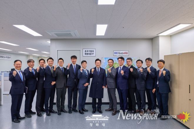 뉴스펀치 김용희 기자 | 이재명 대통령은 26일 정부서울청사 창성동 별관에 있는 '초국가범죄 특별대응 태스크포스(TF)' 사무실을 깜짝 방문해 직원들을 격려했다고 강유정 청와대 대변인이 서면 브리핑을 통해 밝혔다.