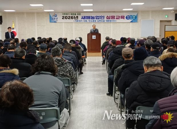 뉴스펀치 김용희 기자 | 영광군은 지난 1월 19일부터 26일까지 대마면을 시작으로 각 읍·면에서 10회에 걸친 '2026년 새해농업인 실용교육'을 성황리에 마쳤다. 올해 교육에는 3,180명의 농업인이 참석해 전년보다 1,000명 이상 늘어나는 등 현장의 높은 관심 속에 교육이 진행됐다.
