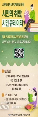 뉴스펀치 김윤걸 기자 | 부산광역시립시민도서관은 오는 3월부터 12월까지 이용자가 직접 도서를 추천하고 전시에 참여하는 북큐레이션 프로그램 ‘시민의 취향, 시민 큐레이터’를 운영한다.