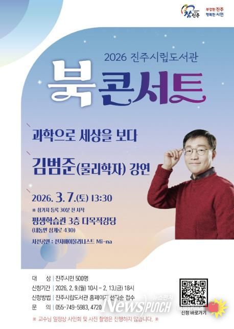 뉴스펀치 박세훈 기자 | 진주시립도서관은 오는 3월 7일 오후 1시 30분 평생학습관 다목적강당에서 김범준 성균관대학교 물리학과 교수를 초청해 북콘