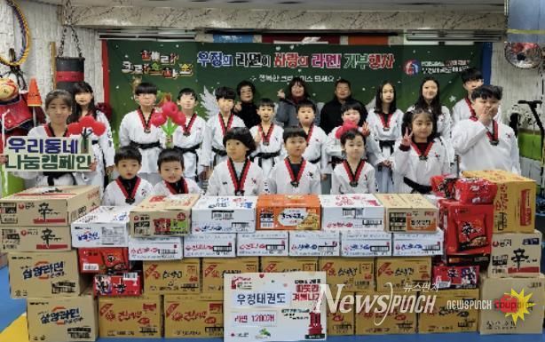 이번 기부는 우정태권도 원아들과 학부모가 함께 준비했으며, 기부받은 라면 1천2백 개는 관내 취약계층에 전달할 예정이다. 우정태권도는 매년 지속적인 나눔 활동을 통해 지역 내 취약계층 지원에 동참하고 있다.