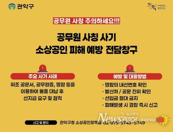 박준희 관악구청장은 “공무원 사칭 사기는 소상공인의 생계를 위협하는 파렴치한 범죄”라고 지적하며, “전담창구 운영을 통해 소상공인이 안심하고 생업에 전념할 수 있는 환경을 조성하고, 예방 중심의 행정 지원을 아끼지 않겠다”고 밝혔다.