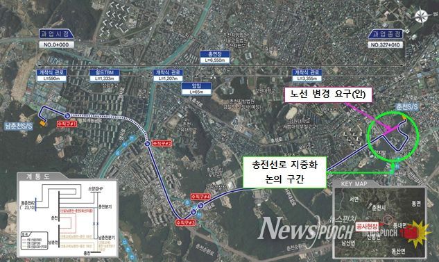 뉴스펀치 조평훈 기자 | 후평동 일원 고압 송전선로 일부가 춘천시, 공동주택 사업주체, 한국전력공사 간 협의를 거쳐 지중화된다.