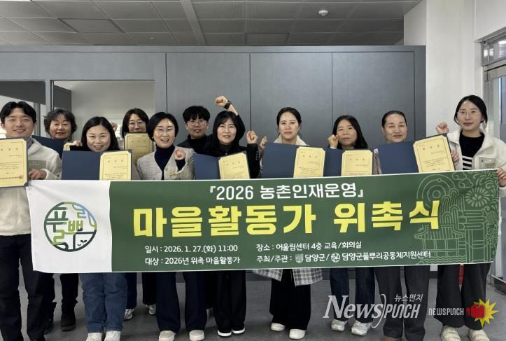 뉴스펀치 김용희 기자 | 담양군이 주민 주도의 마을공동체 활성화를 위해 현장 맞춤형 마을활동가 9인을 위촉하고 2026년 공동체 사업을 본격 추진한다.