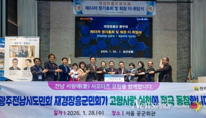 뉴스펀치 김용희 기자 | 전라남도는 지난 28일 서울에서 열린 재경장흥군향우회 정기총회와 회장 이·취임식에 참석해 고향사랑 실천 도정설명회를 개최, 고향사랑 실천 확산을 위한 교류협력을 강화하기로 했다고 밝혔다.