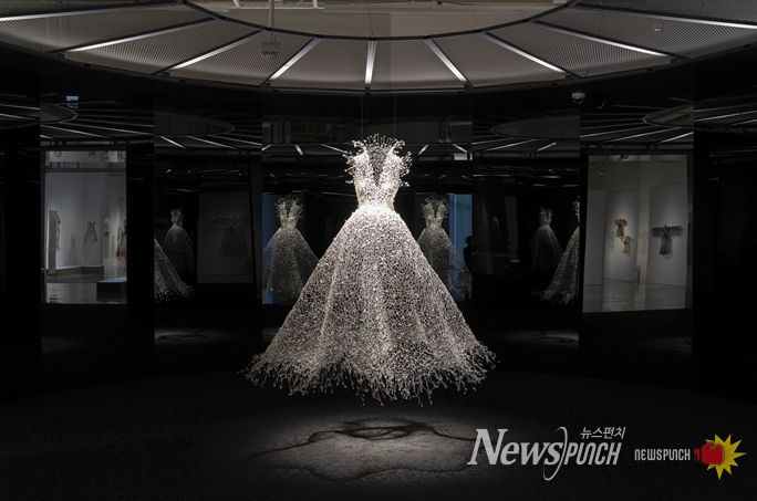 특히 3층 전시장 도입부 'Dreaming' 공간이 이번 전시를 대표하는 화제의 공간이자 주요 포토스폿으로 큰 인기를 끌고 있다. 어둠 속 중심에 전시된 ‘백매(白梅)’ 드레스는 검은 거울과 조명 연출을 통해 몽환적인 장관을 만들어내며 관람객의 발길을 붙잡고 탄성을 자아낸다.