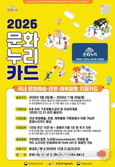 뉴스펀치 최영남 기자 | 남원시가 2026년도 통합문화이용권(문화누리카드) 지원을 확대해 저소득층의 문화 향유 기회를 넓힌다고 밝혔다.