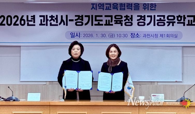 뉴스펀치 박상훈 기자 | 안양과천교육지원청은 1월 30일, 과천시청에서 과천시 (시장 신계용)와 지역의 교육자원을 활용한 학생 맞춤형 미래교육 확대와 지속 가능한 지역교육협력 체계 구축을 위해 '2026 지역교육협력을 위한 과천시–경기도 교육청 경기공유학교 업무협약'을 체결했다.