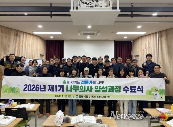 뉴스펀치 이현승 기자 | 충청북도산림환경연구소는 지난 1월 5일부터 30일까지 미동산산림교육센터에서 운영한 ‘2026년 제1기 나무의사 양성과정’을 마치고, 교육과정을 이수한 교육생 32명을 배출했다.