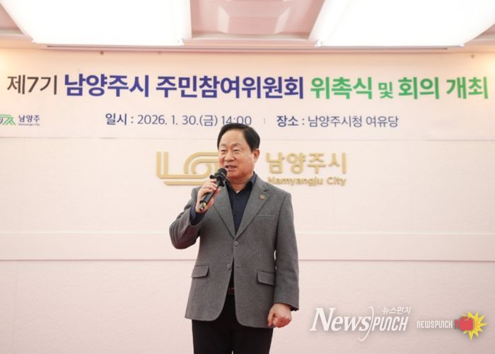 뉴스펀치 박상훈 기자 | 남양주시는 30일 시청 여유당에서 ‘제7기 남양주시 주민참여위원회’ 위원을 위촉하고, 2026년 제1회 주민참여위원회 회의를 개최했다고 밝혔다.