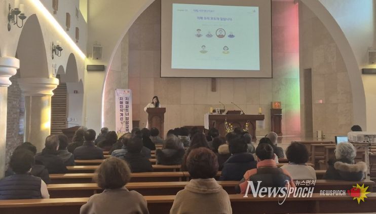 뉴스펀치 이현승 기자 | 청주시 청원보건소 치매안심센터는 30일 청원구 사천동 새터성당에서 교인 50여명을 대상으로 치매 인식개선 홍보 캠페인을 진행했다.