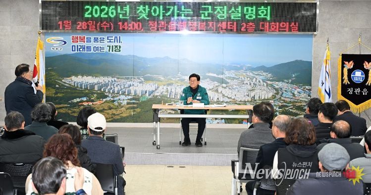 뉴스펀치 김윤걸 기자 | 부산 기장군이 병오년 새해를 맞아 추진한‘2026년 찾아가는 군정설명회’를 5개 읍·면 순회 일정으로 마무리했다고 30일 밝혔다.