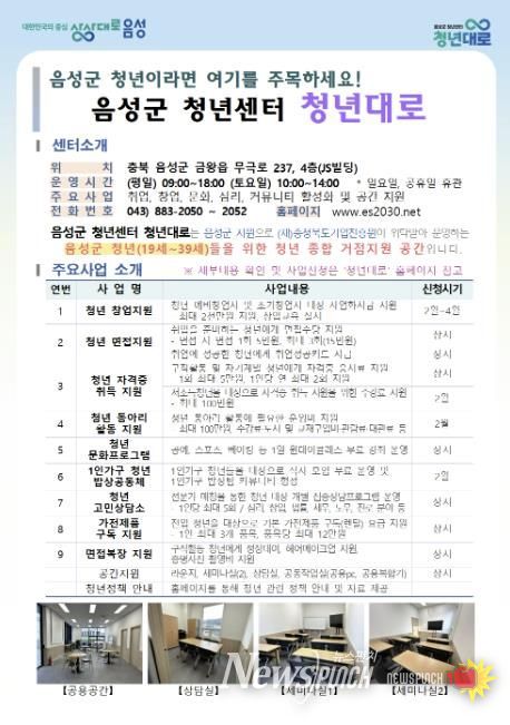 한편 금왕읍 무극리에 위치한 청년대로는 평일 오전 9시부터 저녁 6시, 토요일 오전 10시부터 14시까지 운영한다.
