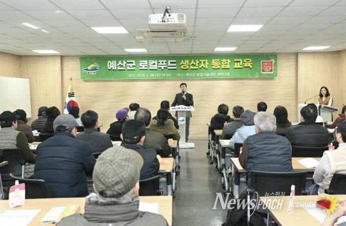 뉴스펀치 이현승 기자 | 예산군은 농업기술센터 세미나실에서 로컬푸드 직매장 출하 농가를 대상으로 2026년 로컬푸드 생산자 통합 교육을 실시했다고 2일 밝혔다.