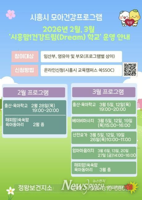 이번 프로그램은 2월부터 5월까지 정왕보건지소에서 운영되며, 4개 분야ㆍ12종 강좌를 총 89회 운영할 계획이다. 분야별 주요 강좌는 ▲(임신ㆍ출산ㆍ육아 분야) 출산ㆍ육아학교, 오감태교, 모유수유클리닉, 베이비 마사지, 오감놀이 ▲(운동 분야) 산전요가, 산후필라테스 ▲(심리 분야) 산전ㆍ산후 우울 예방 미술치료와 심리 테라피 프로그램이 있다.