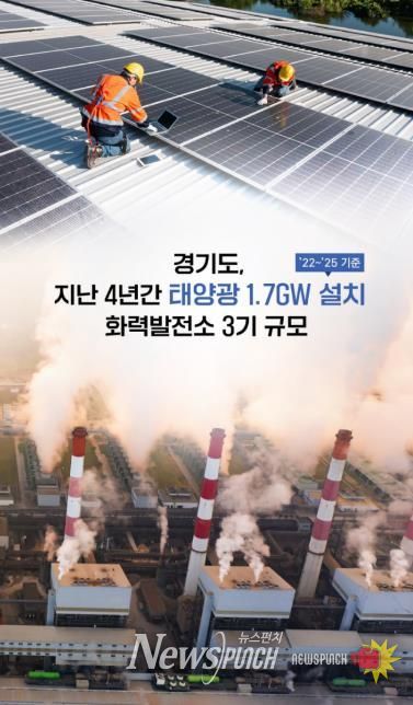 뉴스펀치 박상훈 기자 | 경기도는 민선 8기(2022~2025년) 동안 총 1.7GW 규모의 태양광발전소가 도에 신규 설치됐다고 2일 밝혔다. 1.7GW는 통상 1기당 500MW 규모인 화력발전소 3기를 상회하는 설비 규모이다. 특히 2025년 한 해만 약 600MW*의 신규 태양광 발전 설비가 보급됐는데, 이는 민선 8기 전체 설치량의 약 3분의 1이 넘는 수준이다. (* 상업용 480MW, 자가용 설비는 과거 데이터로 추정)