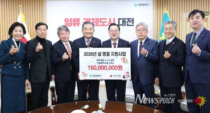 뉴스펀치 이현승 기자 | 대전시는 2026년 설 명절을 앞두고 대전사회복지공동모금회로부터 저소득 소외계층을 위한 성금 1억 5천만 원을 기탁받았다.