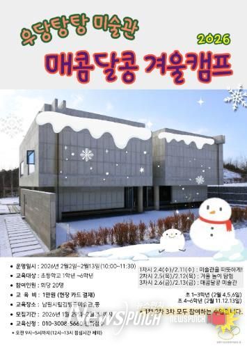뉴스펀치 정홍균 기자 | 남원시립김병종미술관은 2월 4일부터 13일까지 겨울방학 특별 교육 프로그램 ‘2026년 우당탕탕 미술관’을 운영한다.