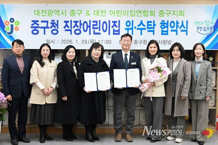 뉴스펀치 이현승 기자 | 대전 중구는 지난 1월 29일 중구청에서 직장어린이집의 안정적 운영과 양질의 보육서비스 제공을 위해 대전어린이집연합회 중구지회와 직장어린이집 위·수탁 협약을 체결했다고 밝혔다.