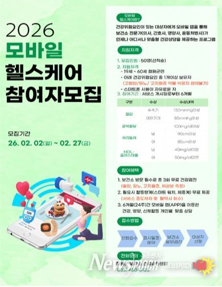뉴스펀치 조평훈 기자 | 철원군보건소는 군민의 건강증진과 만성질환 예방을 위해 스마트폰 앱을 활용한 맞춤형 건강관리 서비스인 ‘모바일 헬스케어 사업’ 참여자 50명을 선착순으로 모집한다.