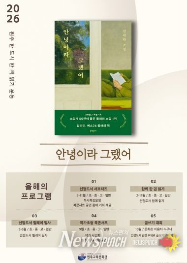 뉴스펀치 조평훈 기자 | 강원특별자치도교육청원주교육문화관(관장 용석태)은 시민 독서 문화 확산과 책 읽는 공동체 조성을 위해 2026년 ‘원주 한 도시 한 책 읽기 운동’ 사업의 일환으로 연중 다양한 독서 참여 프로그램을 운영한다.