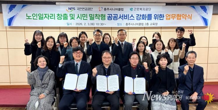 뉴스펀치 이현승 기자 | 충주시니어클럽은 3일 충주시니어클럽 2층 교육장에서 국민연금공단 충주지사, 근로복지공단 충주지사와 함께 ‘노인일자리 창출과 공공서비스 강화를 위한 업무협약(MOU)’을 체결했다.