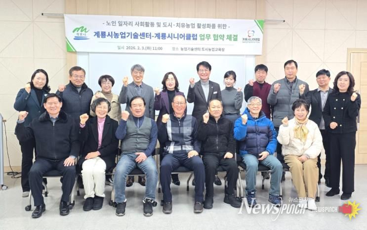 뉴스펀치 이현승 기자 | 충남 계룡시는 3일 농업기술센터와 계룡시니어클럽이 노인 일자리 및 도시․치유농업 활성화를 위한 업무협약을 체결했다고 밝혔다.