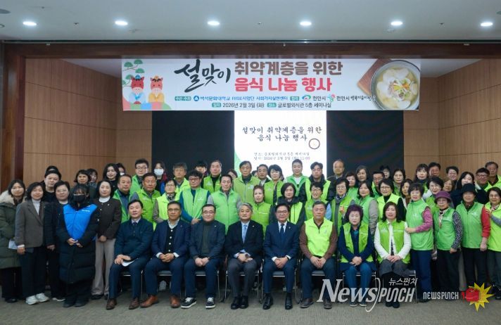 뉴스펀치 이현승 기자 | 천안시는 3일 백석문화대학교 글로벌외식관에서 행복키움지원단, 백석문화대 RISE사업단과 함께 ‘설맞이 취약계층 음식 나눔 행사’를 개최했다.