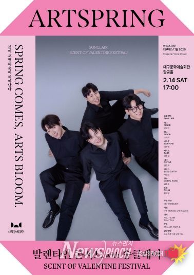 뉴스펀치 조평훈 기자 | 대구문화예술진흥원 대구문화예술회관은 오는 2월 14일 오후 5시, 팔공홀에서 지역 성악가로 구성된 남성 4인조 크로스오버 보컬 그룹 송클레어(SONCLAIR)와 함께하는 ‘발렌타인 콘서트 with 송클레어 – Scent of Valentine Festival’을 개최한다.