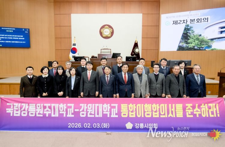뉴스펀치 조평훈 기자 | 강릉시의회는 3일 제327회 강릉시의회(임시회) 제2차 본회의에서 조대영 의원의 대표발의로 ‘국립강릉원주대학교-강원대학교 통합이행합의서 준수 촉구 성명서’를 발의했다.