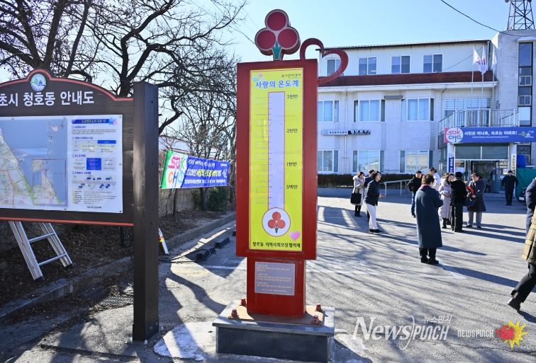 뉴스펀치 조평훈 기자 | 청호동 지역사회보장협의체는 2월 3일 청호동주민센터에서 2026년 ‘사랑의 온도탑 제막식’을 개최하고, 청호동 아바이나눔기금 조성을 위한 성금 접수와 모금 활동을 전개했다.