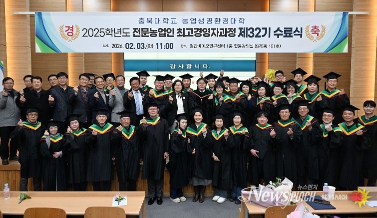 뉴스펀치 이현승 기자 | 충북농업기술원(원장 조은희)은 3일 충북대학교에서 제32기 전문농업인 최고경영자과정 수료식을 열고, 미래 농업을 이끌 전문농업인 45명을 배출했다.