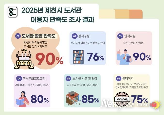 뉴스펀치 이현승 기자 | 제천시립도서관이 지난 12월 도서관 이용자 365명을 대상으로 ‘2025년 제천시 도서관 이용자 만족도 조사’를 실시한 결과, 응답자의 90%가 도서관 전반의 서비스에 만족하는 것으로 나타났다.