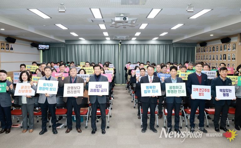 뉴스펀치 이현승 기자 | 금산군은 지난 3일 군청 다목적회의실에서 깨끗하고 신뢰받는 공직 문화를 만들기 위해 2026년 청렴 결의대회를 개최하고 청렴 군정 실천을 위한 각오를 다졌다.