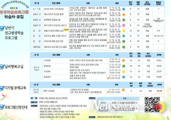 뉴스펀치 정홍균 기자 | 인천광역시교육청신트리도서관은 지역 주민의 생애주기별 학습 기회 제공을 위해 2026년 상반기 평생학습프로그램 학습자를 모집한다.