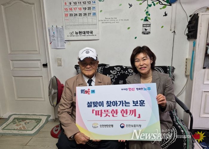 뉴스펀치 정홍균 기자 | 국가보훈부 인천보훈지청에서는 설맞이 인천연탄은행과 함께 2월 4일 관내 취약계층 보훈가족 30가구를 방문하여 도시락과 건강음료 세트를 전달했다.