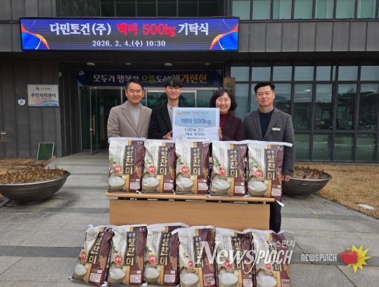 뉴스펀치 이현승 기자 | 다민토건(주)(대표 정의민)이 설 명절을 맞아 4일 문백면 행정복지센터를 찾아 소외계층을 위한 백미 500kg을 기탁했다.