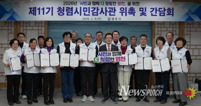 뉴스펀치 박세훈 기자 | 영천시는 4일 시청 영상회의실에서 ‘제11기 청렴시민감사관 위촉 및 청렴영천 간담회’를 개최하고, 청렴한 시정 구현을 위한 다양한 의견을 수렴했다.