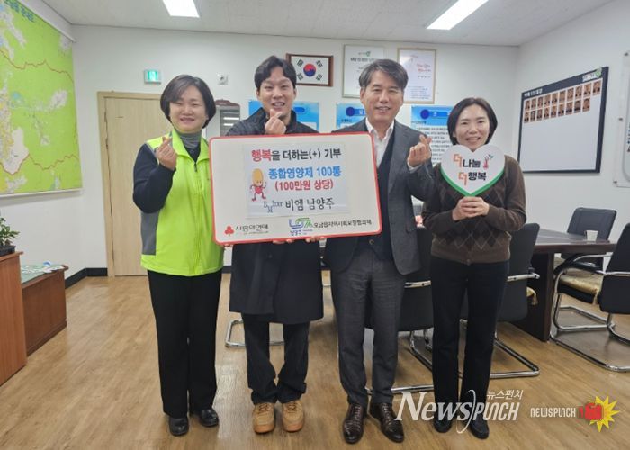 뉴스펀치 박상훈 기자 | 남양주시는 4일 유통 전문회사 비엠 남양주가 지역 내 취약계층을 위해 마련한 종합영양제 100통을 오남읍 지역사회보장협의체에 전달했다고 밝혔다.