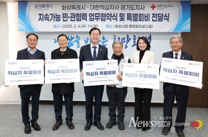 뉴스펀치 박상훈 기자 | 화성특례시와 대한적십자사 경기도지사가 4일 화성시청에서 지속가능한 민·관협력 거버넌스 구축을 위해 업무협약을 체결했다.