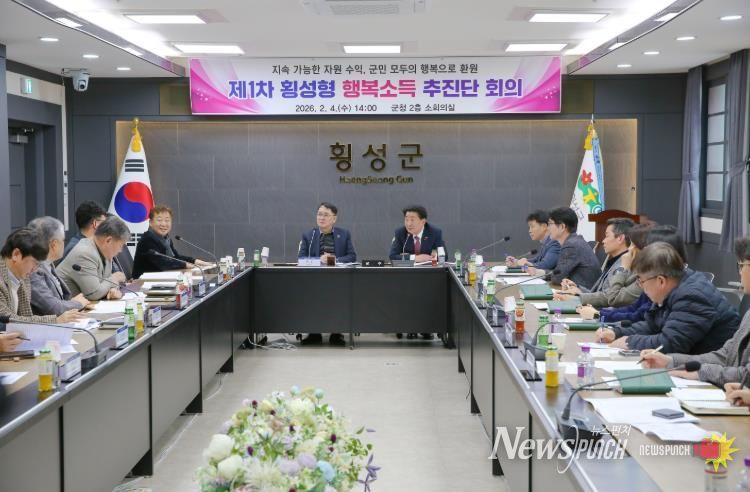 뉴스펀치 조평훈 기자 | 횡성군이 4일 군청 소회의실에서 ‘제1차 횡성형 행복소득 추진단 회의’를 개최하고 군민 소득 증대를 위한 구체적 실행 방안 논의에 착수했다.
