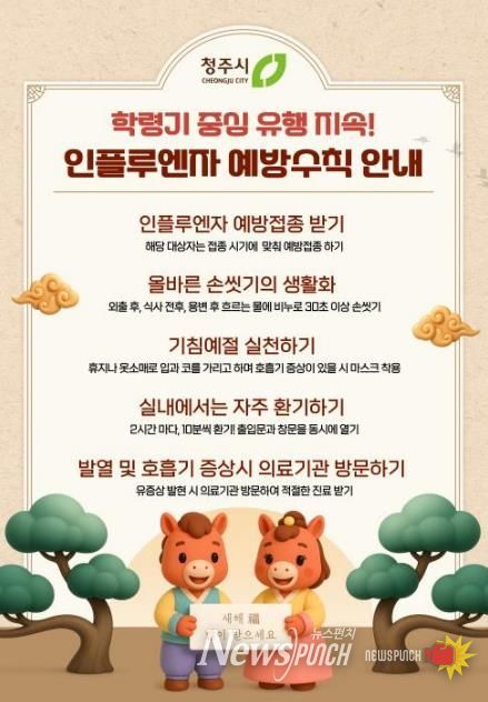 뉴스펀치 이현승 기자 | 청주시 보건소는 5일 최근 지역 내 인플루엔자 의사환자 발생이 학령기를 중심으로 지속됨에 따라 설 연휴 전후 시민 이동과 접촉 증가에 대비해 개인위생 등 기본적인 예방수칙 준수를 당부했다.