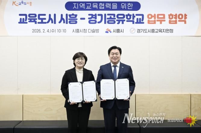 뉴스펀치 박상훈 기자 | 시흥시는 지난 2월 4일 시청 다슬방에서 시흥교육지원청과 함께 ‘지역교육협력을 위한 교육도시 시흥-경기공유학교’ 업무협약을 맺었다.